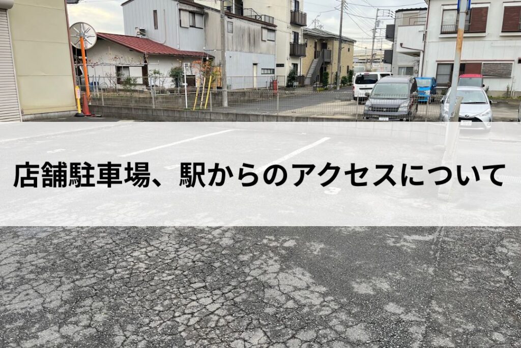 店舗駐車場、駅からのアクセスについて